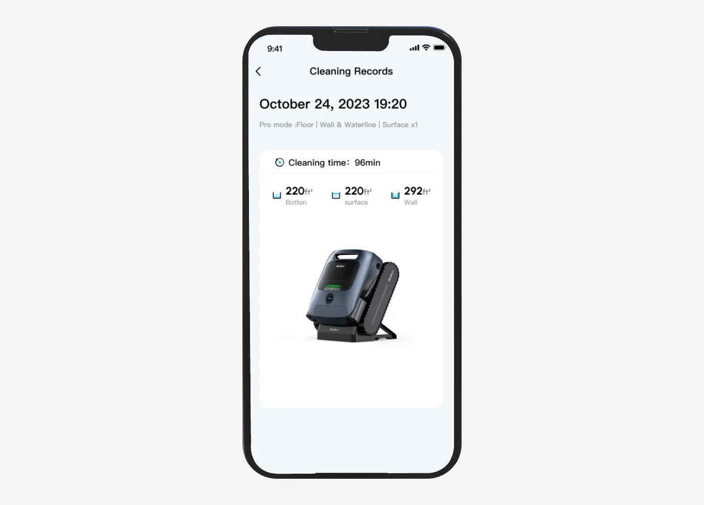 Receive real-time status updates (battery, WiFi connection, cleaning progress), instant notification alerts, and access detailed cleaning records.